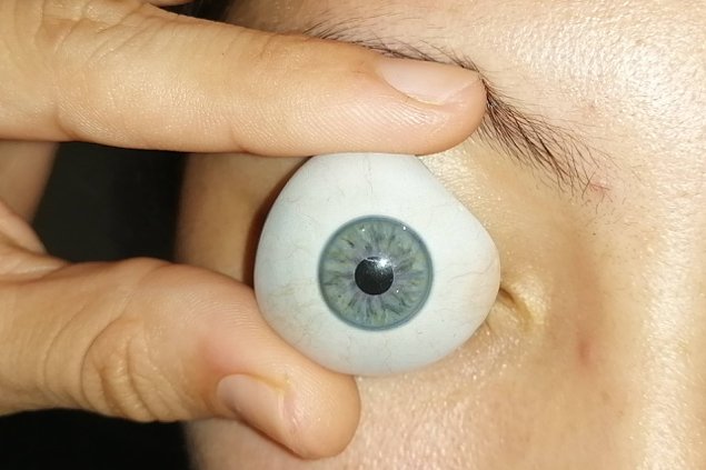 Se mide la pupila, el diámetro corneal; se copia el color del iris y de la conjuntiva del ojo contra lateral del paciente. Se toma como base la pieza blanca de acrílico ajustada los días previos; se procede a la fabricación personalizada del ojo artificial definitivo.
